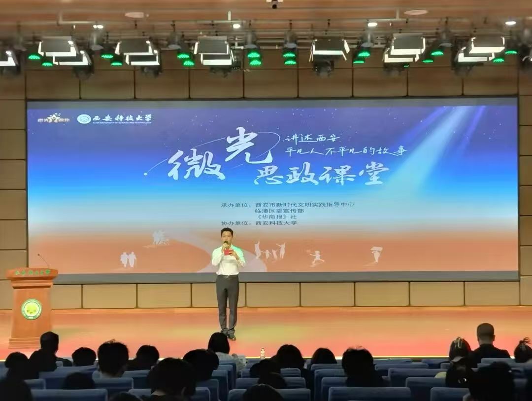 6月11日下午,由西安市新时代文明实践指导中心、西安市临潼区委宣传部、华商报社承办,西安科技大学协办的“微光思政课堂”系列分享活动走进西安科技大学临潼校区骊山校园,为我校第十八期“青马工程”大学生骨干培训班全体学员带来了一场生动的思政课。本次活动邀请三位不同行业的宣讲嘉宾,通过视频展播、事迹分享、理论宣讲等形式,将西安平凡人不平凡的故事带进校园,汇聚微光,点亮思想。