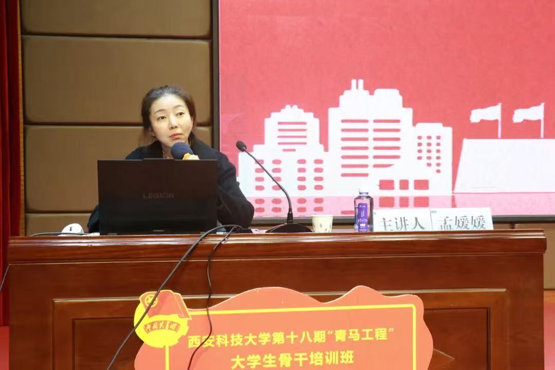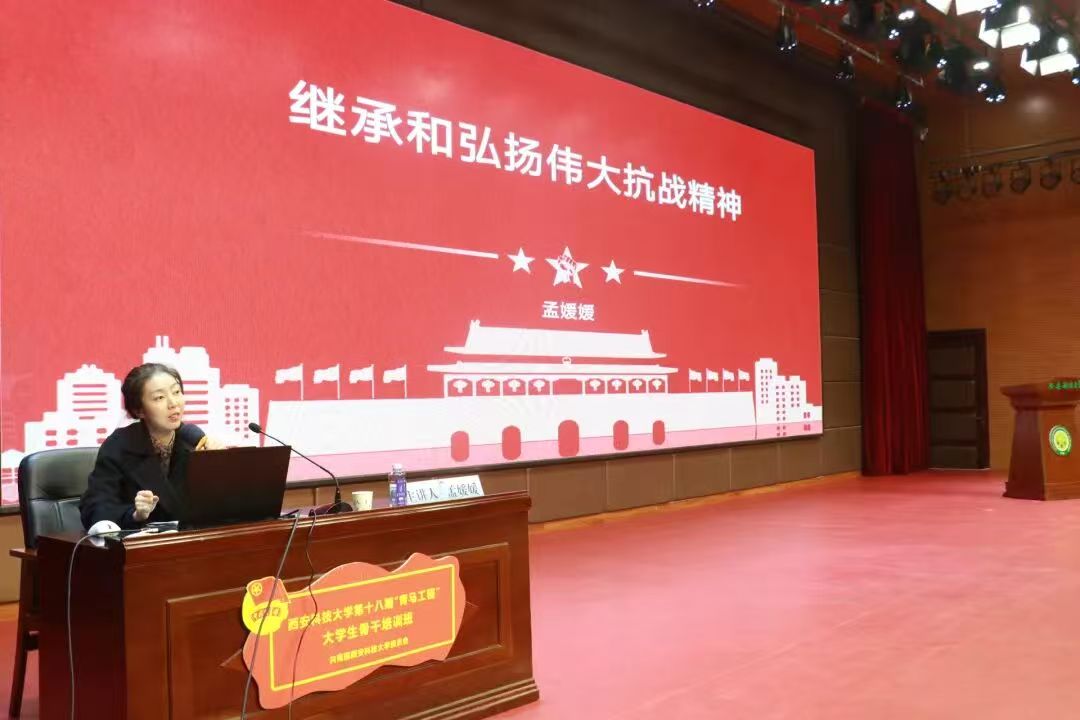 2025年10月24日下午,西安科技大学第十八期“青马工程”大学生骨干培训班第八讲在临潼校区骊山校园顺利举行。本次讲座特邀马克思主义学院孟媛媛副教授担任主讲,以“继承和弘扬伟大抗战精神”为主题,为学员们带来一场深刻的思想洗礼与精神启迪。团委副书记孙小娜老师主持。