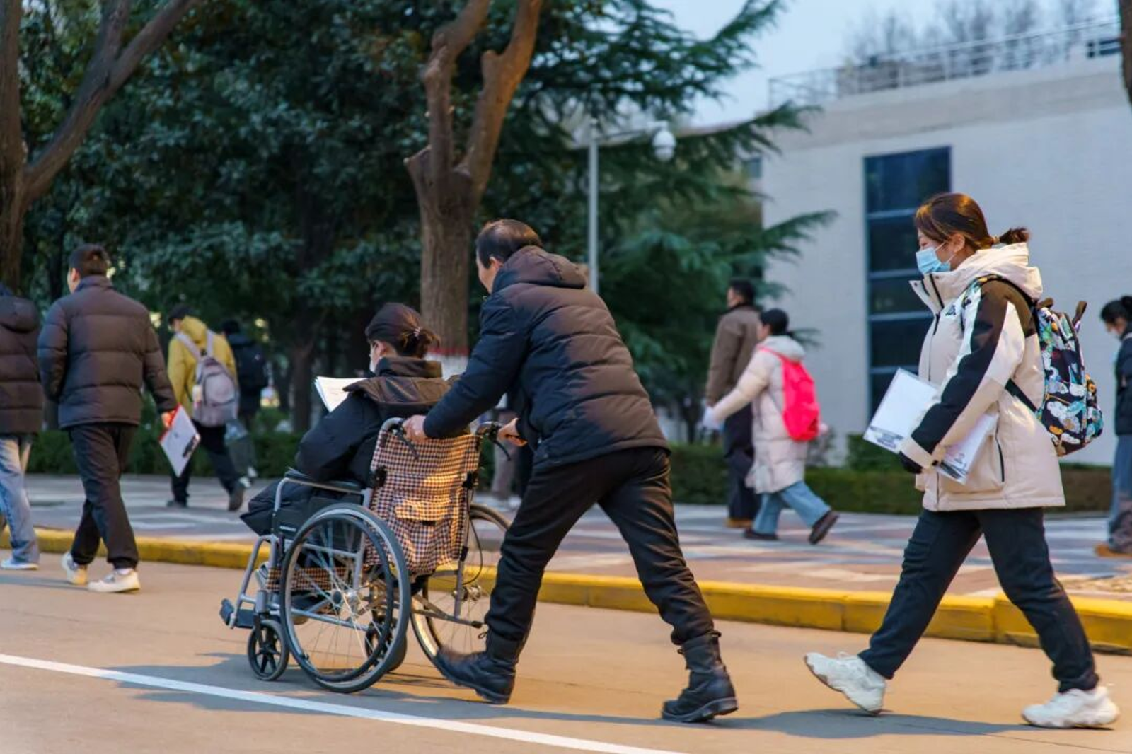 从寒风中一个个“红马甲”的身影