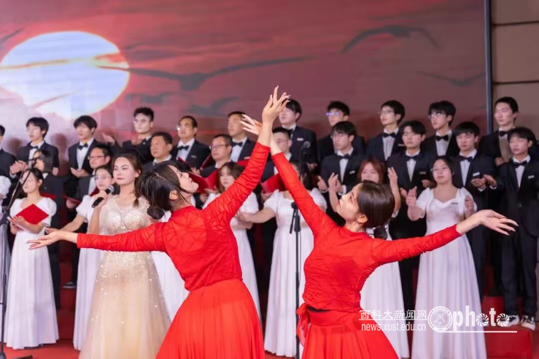 本次比赛中,参赛队伍均以《西安科技大学校歌》拉开演唱序幕,将对党和国家的赤诚热爱、对学校的深厚情谊融为一体,让“祖国利益高于一切”的校训随旋律融进学生的奋斗志向中,让荣校爱校、强校兴校的种子扎根师生心中。比赛期间,校离退教职工合唱团、教工合唱团、大学生合唱团、基础教育管理中心合唱团在本次活动中一展风采,“老中青”三代西科人以歌传情,用最真挚的演唱,传承红色基因,续写爱国华章,为整场比赛增添了浓浓的温情与厚重的底蕴。