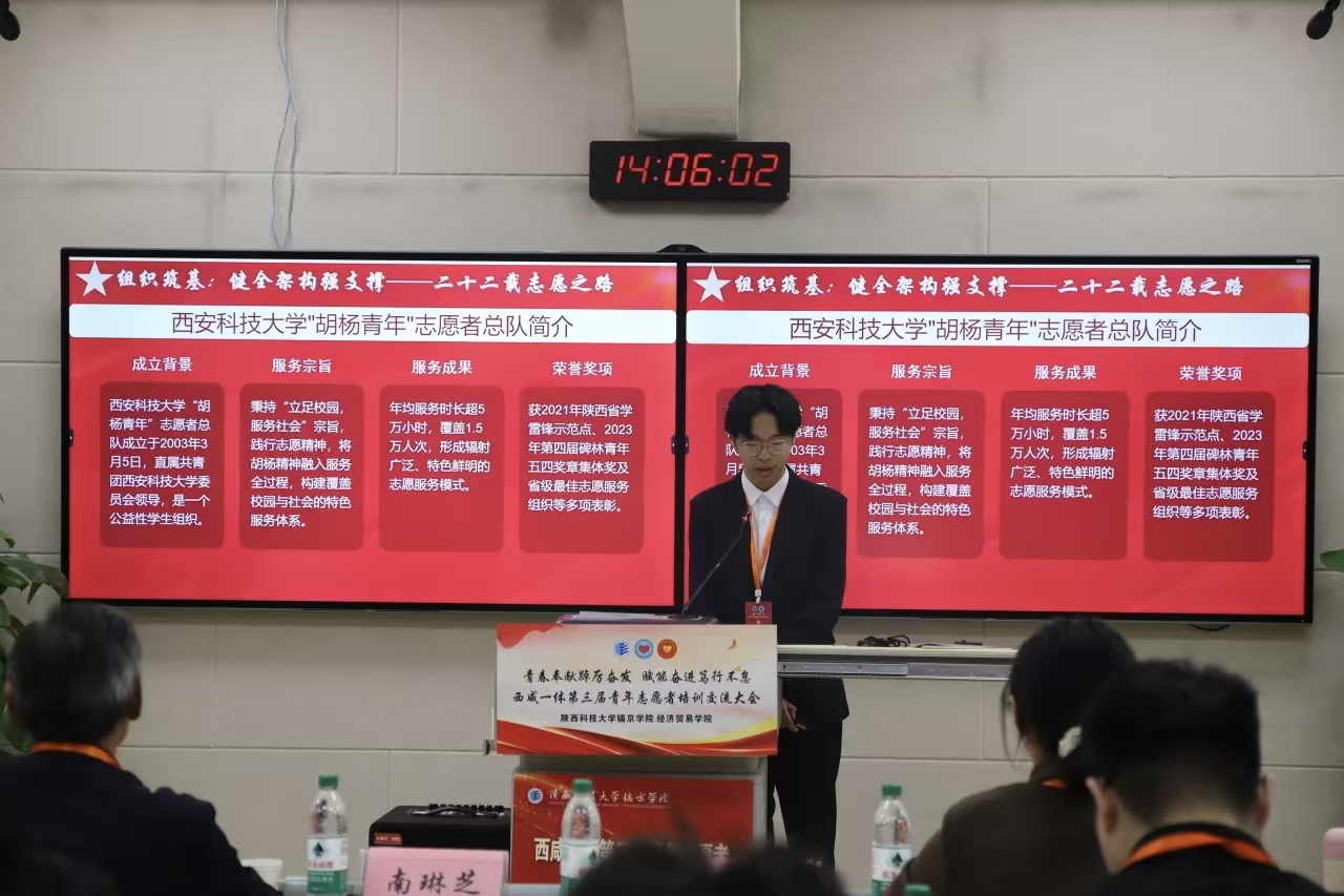 为促进我校志愿活动优化发展,深刻发扬落实“奉献,友爱,互助,进步”的志愿者精神,进一步提升我校志愿者的志愿服务能力,我校志愿者代表赴陕西科技大学镐京学院参加由咸阳市慈善协会公益志愿者分会主办的西咸一体第三届青年志愿者培训交流大会。