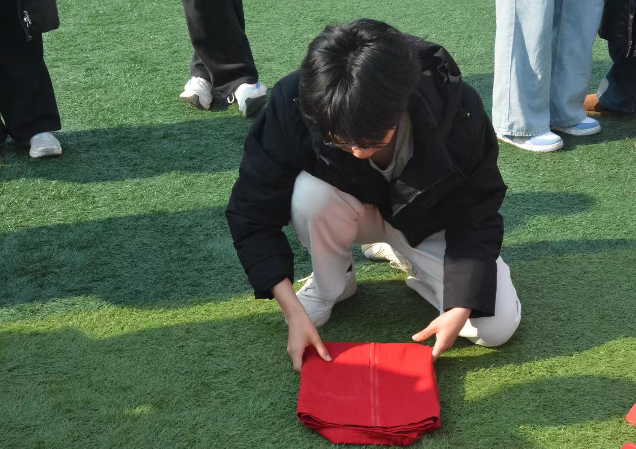 本次叠马甲比赛在专注与细节中展开,志愿者于三分钟内追求“零误差”的工整。赛事不仅锻炼了叠衣技能,更传递出“认真对待每件小事”的志愿态度——整齐的马甲,是服务现场的第一张名片,也是对志愿身份最直接的尊重。