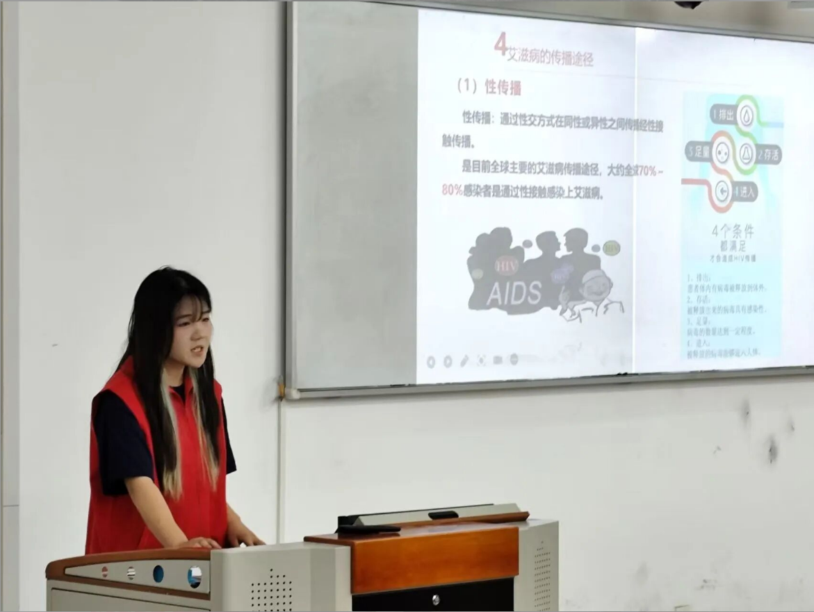 为了促进大众对艾滋病毒感染者和艾滋病人的关心与支持,做好艾滋病的宣传教育活动,“胡杨青年”志愿者总队于2025年5月23日在西安科技大学秦汉校区1号教学楼108教室开展了“防艾有我,健康同行”主题宣讲活动。此次活动面向全体在校大学生,覆盖多个年级与专业,取得了良好的效果。