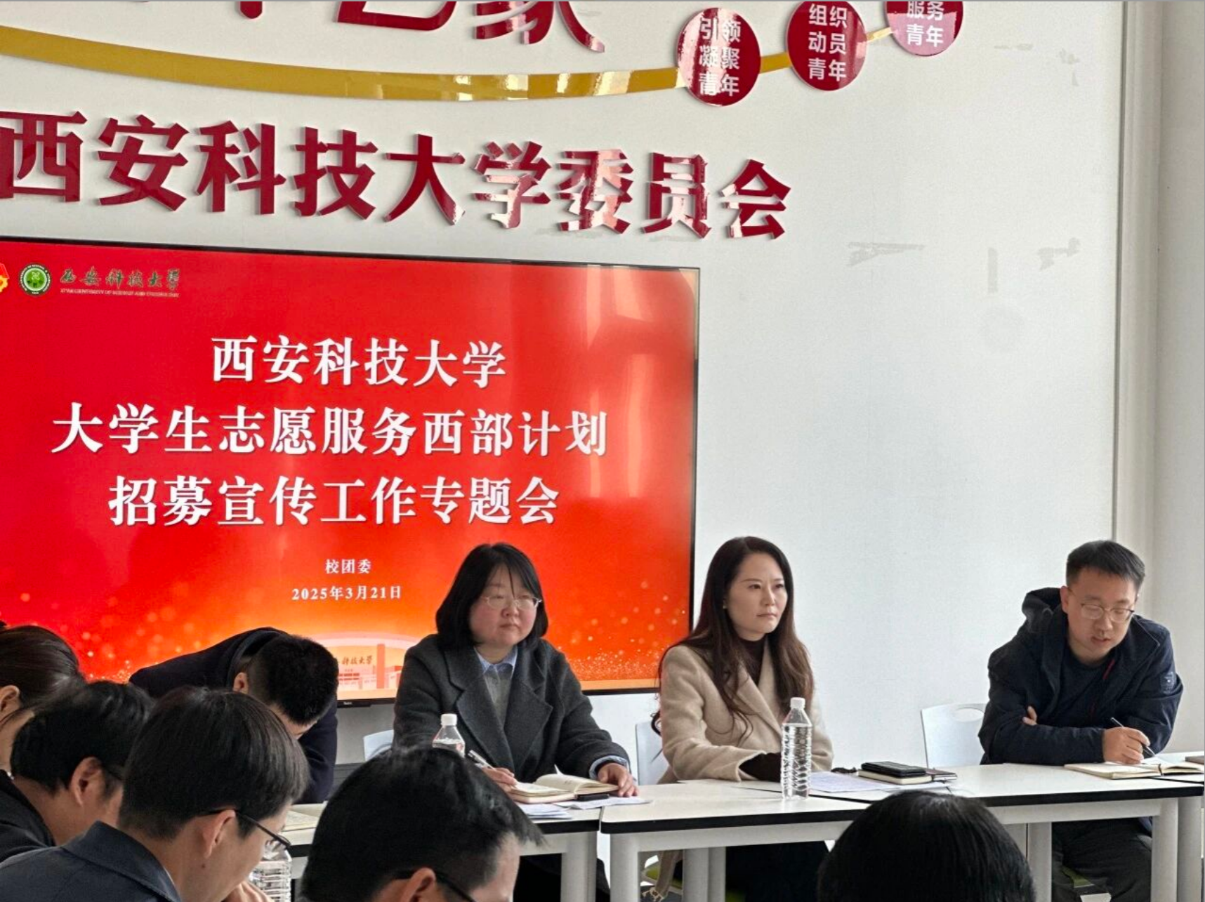 3月21日,西安科技大学2025-2026年度西部计划志愿者招募宣传工作部署会在临潼校区骊山校园创新创业基地2层225室举行,会议由校团委书记高欣主持,各学院团委书记参加。