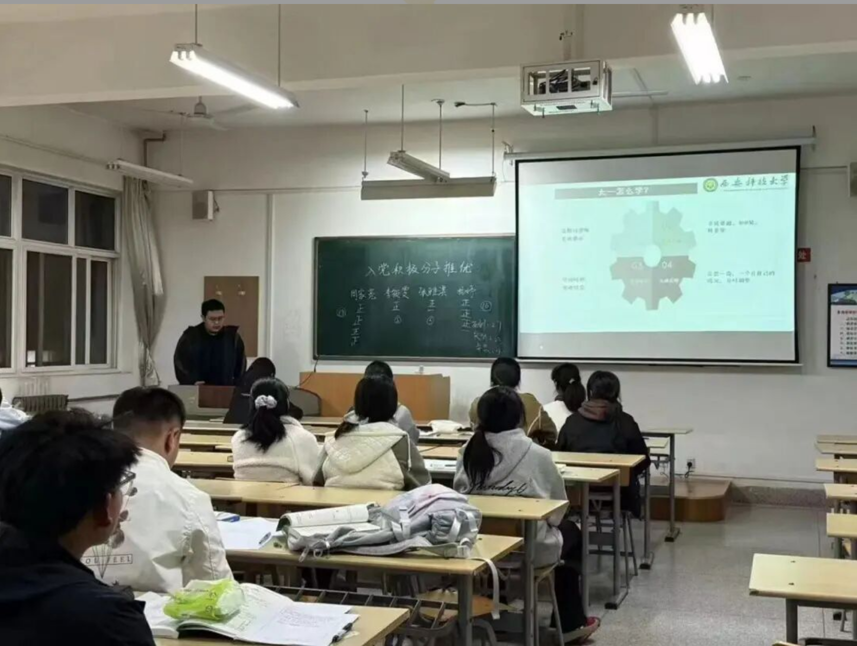 新能源材料与器件23级韦燕进学姐(预备党员、校报部长):以五十余项荣誉与1项实用新型专利为底气,强调参赛协作与目标感的重要性,结合评优入党要求,分享科研成长历程,鼓励同学们知行合一、全面发展。