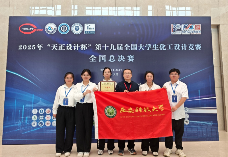 近日,第十九届“天正设计杯”全国大学生化工设计竞赛全国总决赛在天津大学举行。我校化学与化工学院“砜起云涌”团队(黄颖、郑国鑫、杨国庆、周旭露、俞文杰)荣获全国一等奖。该团队在汪广恒老师指导下,历经半年备赛,以西北赛区第二名晋级全国赛,其设计项目“年产8500吨二甲基亚砜生产”以煤气化尾气中H₂S为原料,实现高效绿色转化,构建含硫尾气高效增值与洁净氧化反应结合的环保体系,为煤化工资源协同利用提供范例。