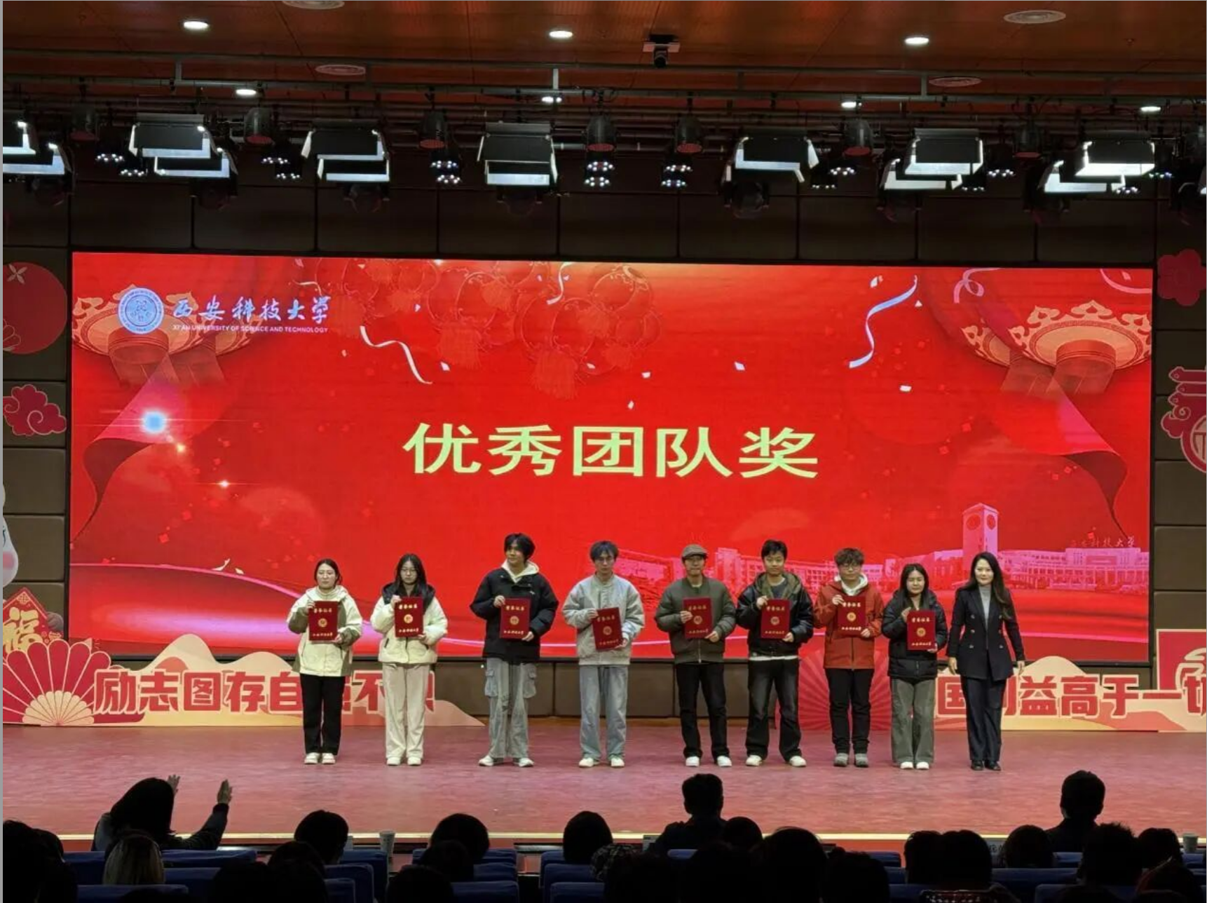 启动会上,孙小娜宣读了《关于表彰2025年“西科优秀学子寒假回访母校”专项社会实践活动优秀团队和优秀个人的通报》。大会对荣获“优秀组织奖”“优秀团队奖"”“优秀领队奖”“优秀个人奖”的5个学院、15个团队及99人进行了表彰。程卫星、高欣、赵兵朝、孙小娜分别为以上获奖单位和个人颁奖。