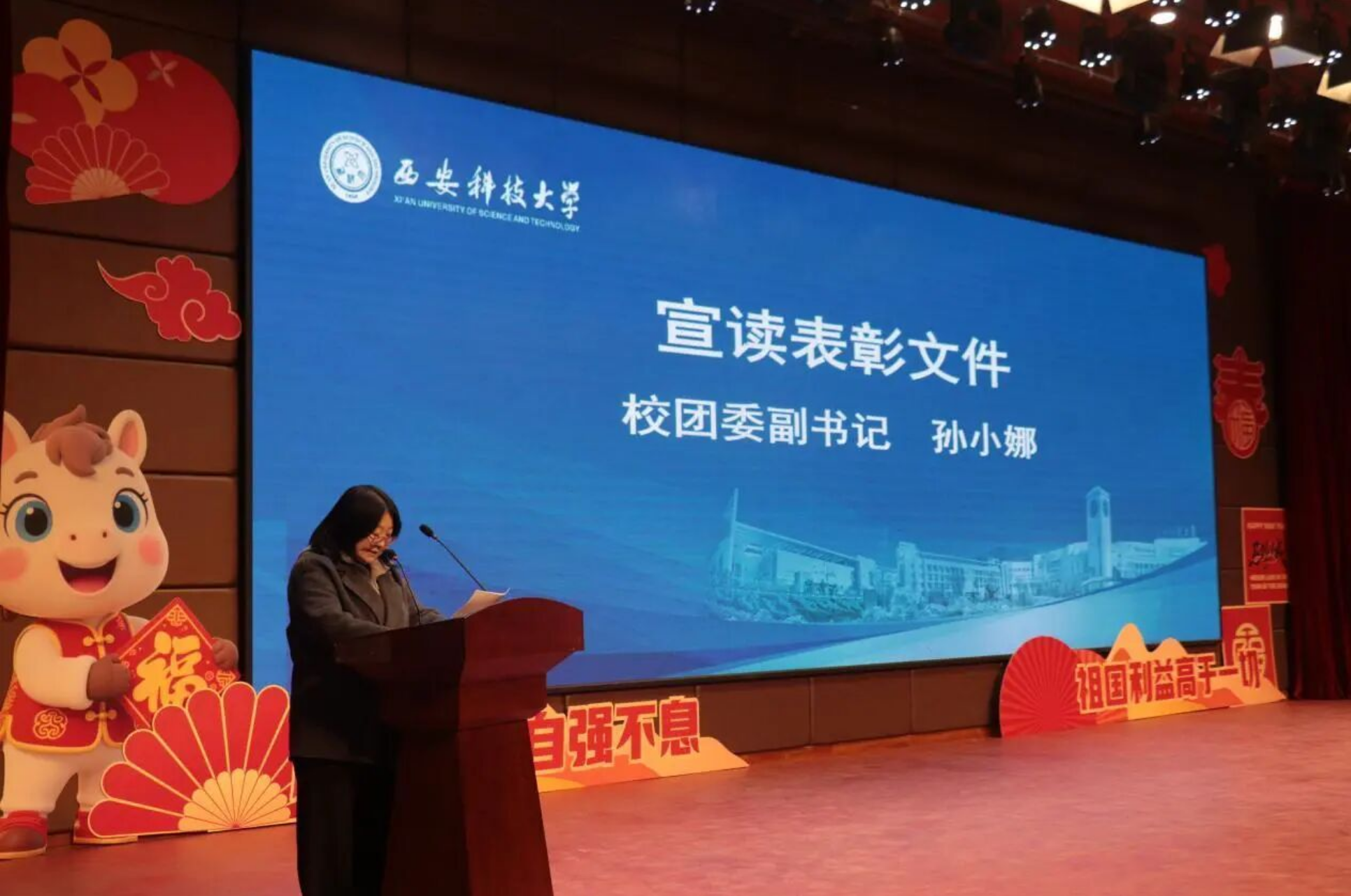 1月6日下午,学校在临潼校区骊山校园煤炭科技中心一楼报告厅举行2026年寒假“优秀学子回访母校”专项社会实践活动启动仪式暨2025年总结表彰大会。副校长程卫星出席活动并讲话,校团委书记高欣、教务处处长赵兵朝、校团委副书记孙小娜,获奖学院分团委负责人及各学院600余名回访母校学生代表参加活动,活动由教务处副处长兼招生办公室负责人李鹏主持。