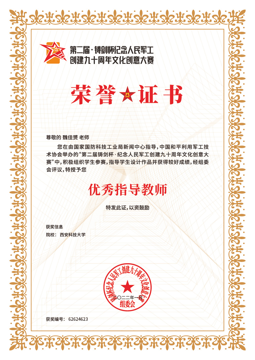 近日,由国家国防科技工业局新闻宣传中心、中国和平利用军工技术协会主办,《国防工业科技》杂志、《中国军转民》杂志承办,中国军转民国防教育普及办公室、大连平面协会等有关单位和大连理工大学建筑与艺术学院、大连工业大学艺术设计学院等高校协办的第二届“铸剑杯”纪念人民军工创建九十周年文化创意大赛落下帷幕。此次赛事参赛人数共6770人,收到来自全国各院校的16772件作品。