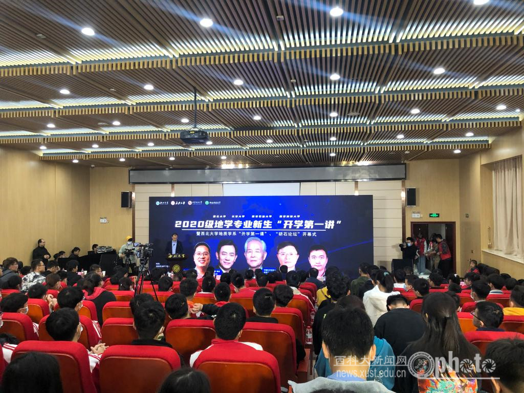 为加强地学专业新生专业思想教育,提高学生学习动力,10月27日下午,2020级地学专业新生“开学第一讲”活动在西北大学图书馆报告厅举行,来自西安科技大学、西北大学、长安大学、西安石油大学的2020级地学专业新生和教师代表齐聚一堂,共谱新生发展蓝图,我校地环学院副院长侯晨涛、教师代表申艳军、学工办主任林伟、辅导员韩蕊及2020级本科、研究生代表30余人参加了活动。